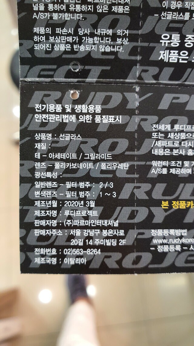 | 2. 소재 | 아세테이트, 폴리우레탄 |