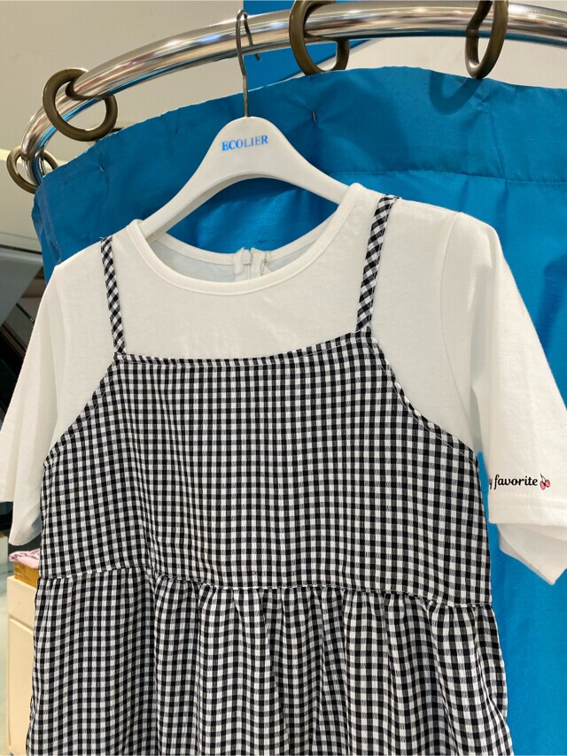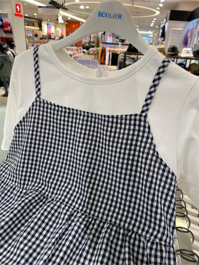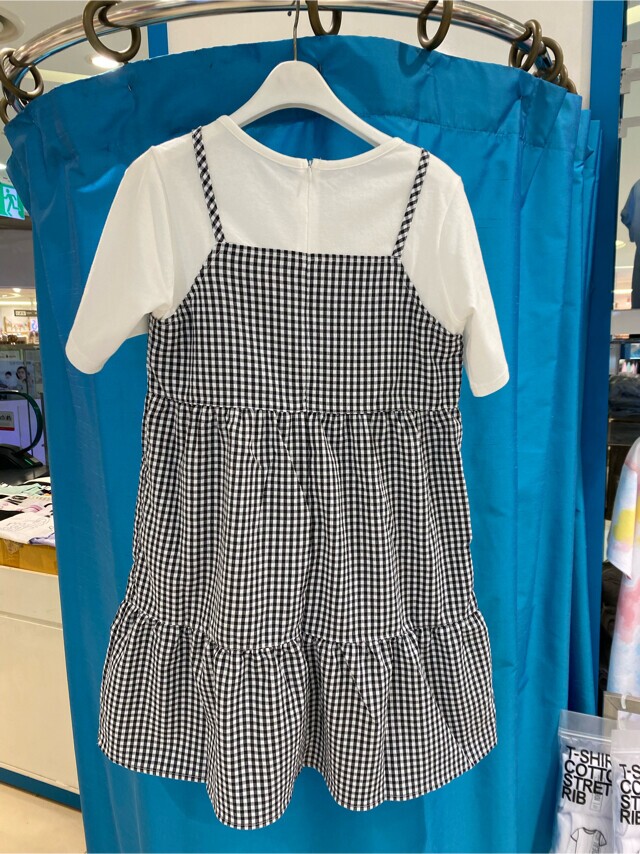 22B1856BK 체크 티어드 레이어드 원피스