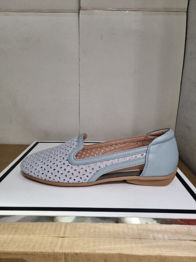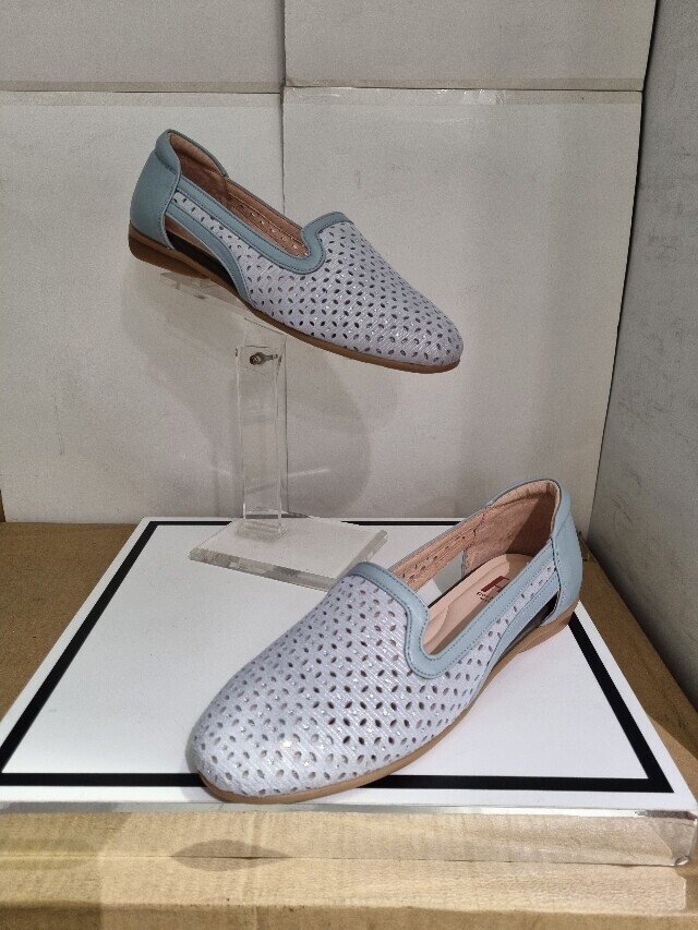 에스콰이아 여성 발편한 큐빅장식 펀칭 슬립온 굽2센치PFBMST623