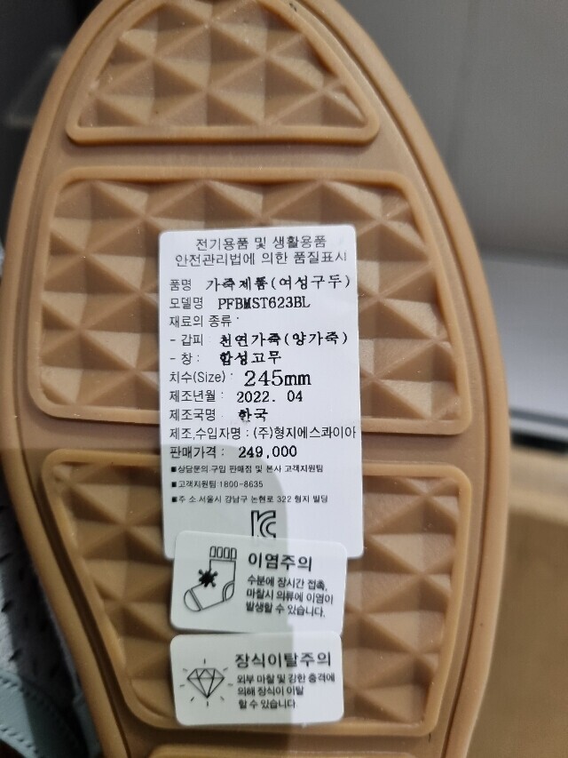 | 1. 제품 소재 (운동화인 경우에는 겉감, 안감을 구분하여 표시) | 양가죽 |