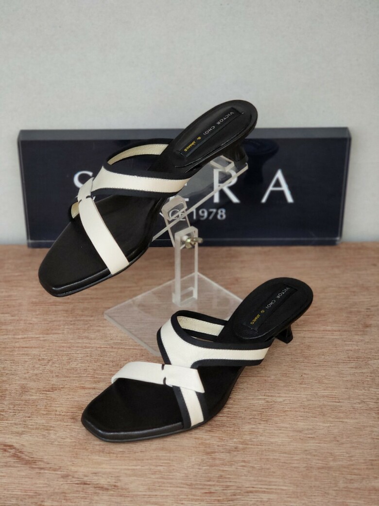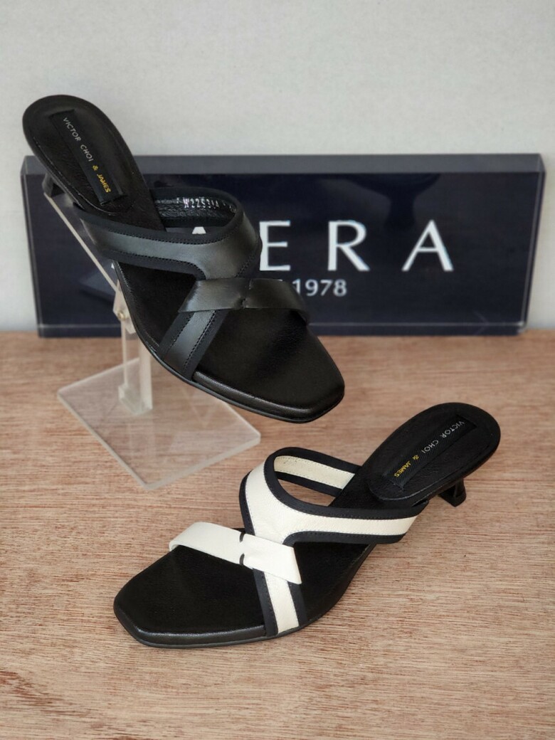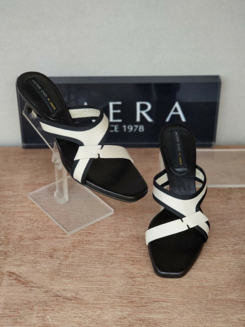 [세라] (2color) VICTOR CHOI & JAMES 사선 크로스 뮬&샌들(4cm) W22S314