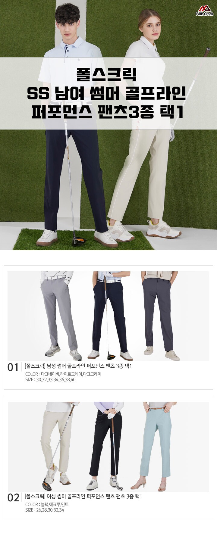 폴스크릭 남여 썸머 골프라인 퍼포먼스 팬츠 6종 택1