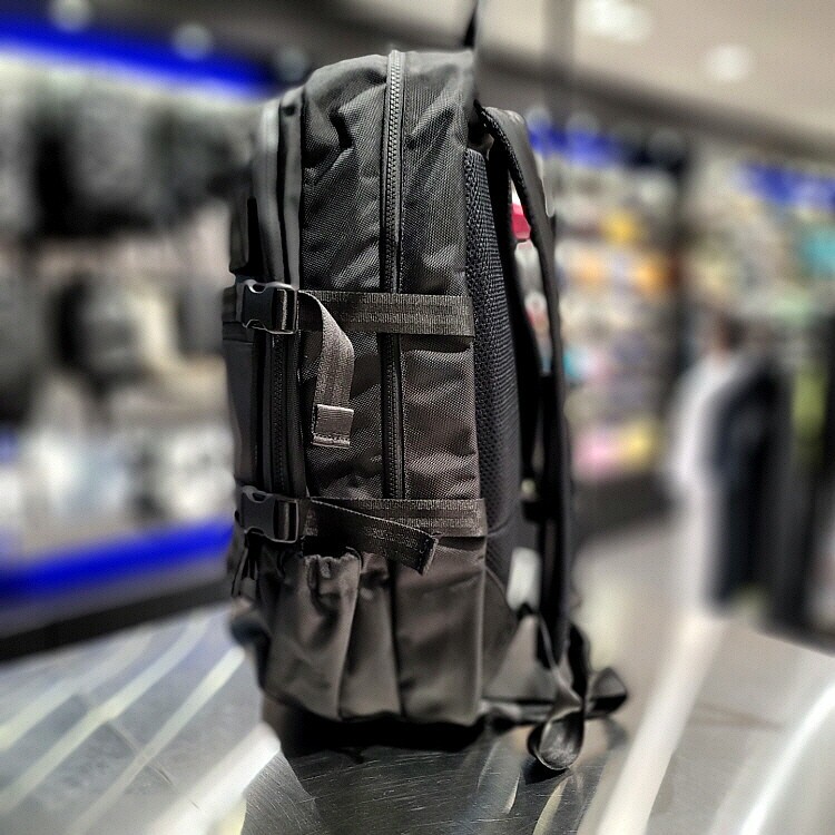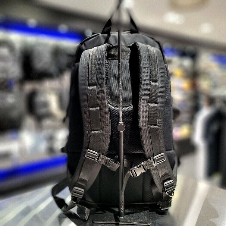 스케이트 보드나 아웃도어 비품 등을 외측에 장치할 수 있다,oval형의 실루엣이 특징적인 어반 팩.