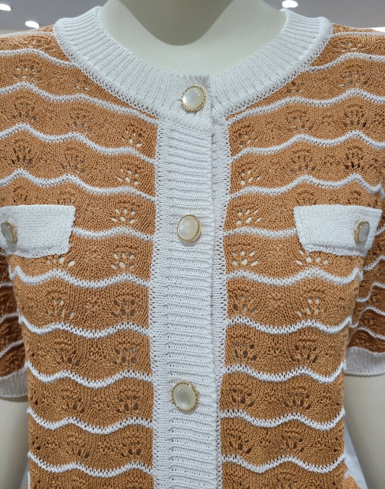 씨씨콜렉트 물결 스트라이프 펀칭 카디건 E223KSL102