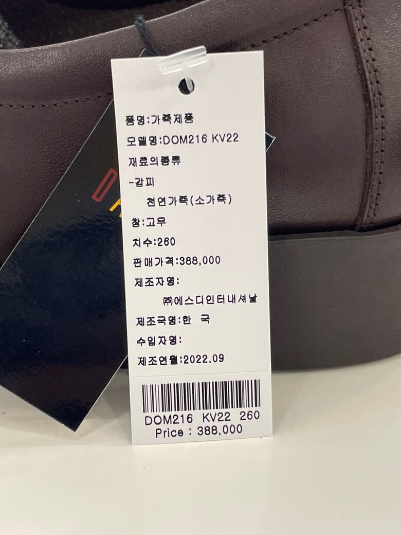 1. 제품 소재 (운동화인 경우에는 겉감, 안감을 구분하여 표시) 소가죽