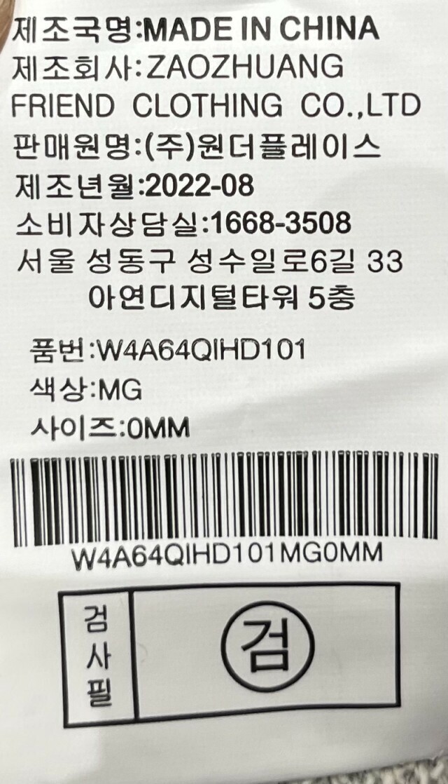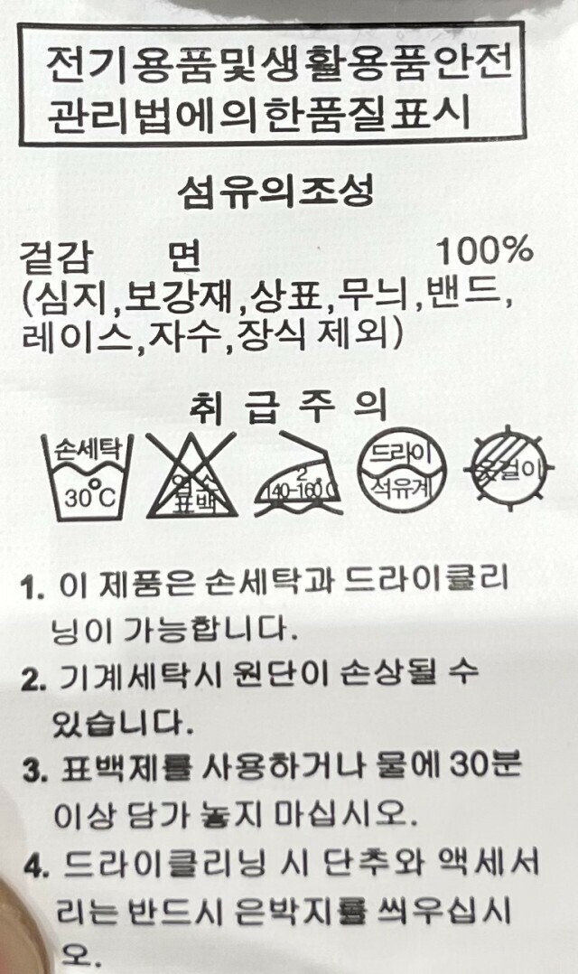 | 7. 세탁방법 및 취급시 주의사항 | 상세페이지 참조 |
