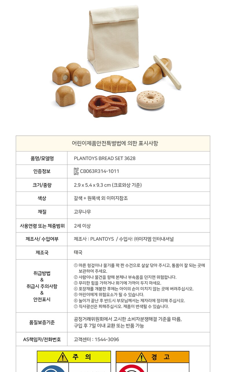 1. 품명 및 모델명 | 장난감 PLANTOYS 주방 식품 BREAD SET 3628 |