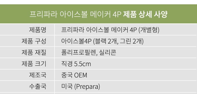 | 3. 구성품 | 아이스볼 4P (블랙2개, 그린2개) |