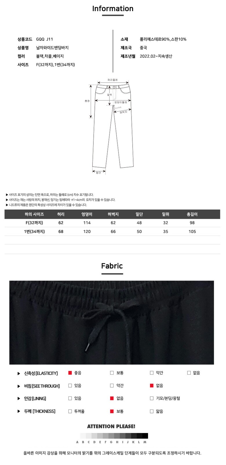 | 1. 제품 소재 (섬유의 조성 또는 혼용률을 백분율로 표시, 기능성인 경우 성적서 또는 허가서) | 상세이미지 참조 |