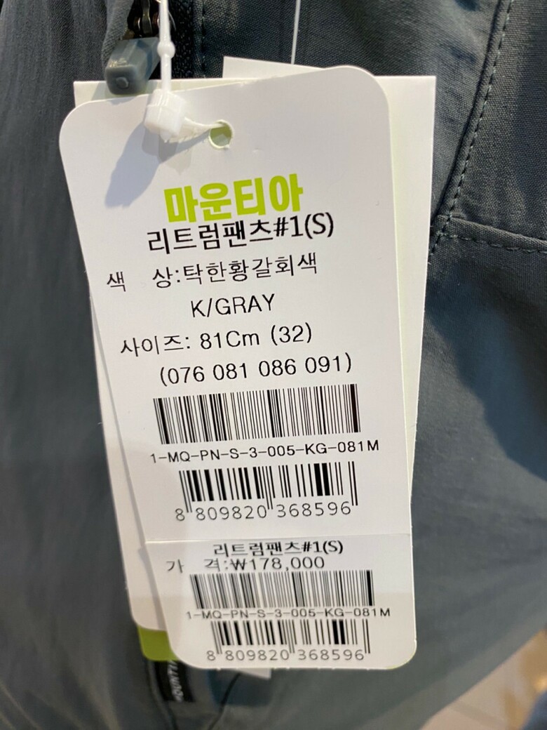 | 6. 세탁방법 및 취급시 주의사항 | 라벨택 참조 |