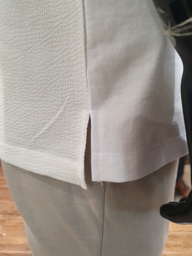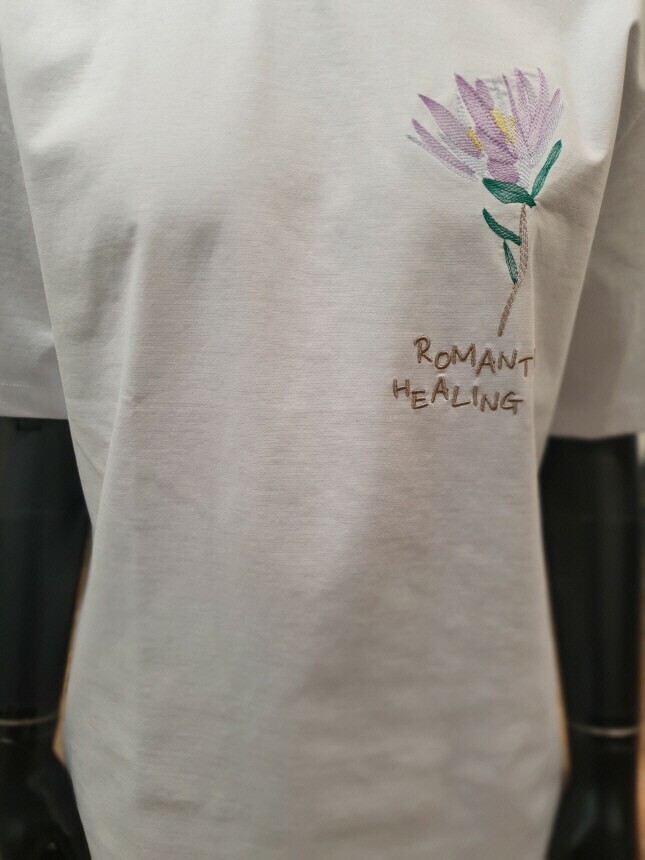 플라워 자수(레터링)와 밑단 옆트임 디테일로