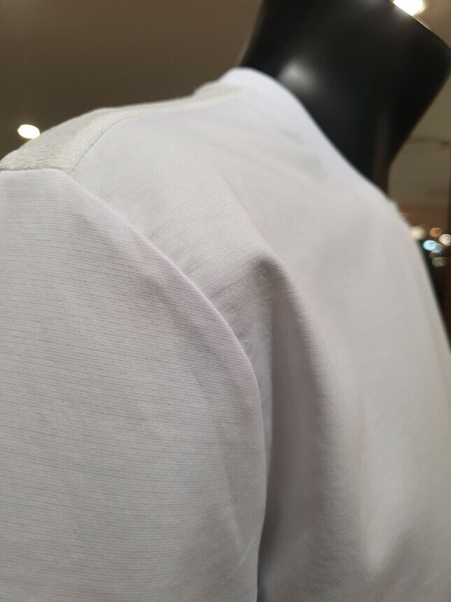 | 1. 제품 소재 (섬유의 조성 또는 혼용률을 백분율로 표시, 기능성인 경우 성적서 또는 허가서) | 겉감 : 폴리에스터 55% , 면 37% , 폴리우레탄 8% 배색 : 폴리에스터 |