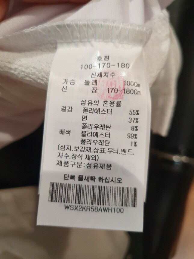 겉감 : 폴리에스터 55% , 면 37% , 폴리우레탄 8%