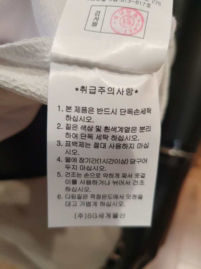 | 6. 세탁방법 및 취급시 주의사항 | 단독 물세탁 |