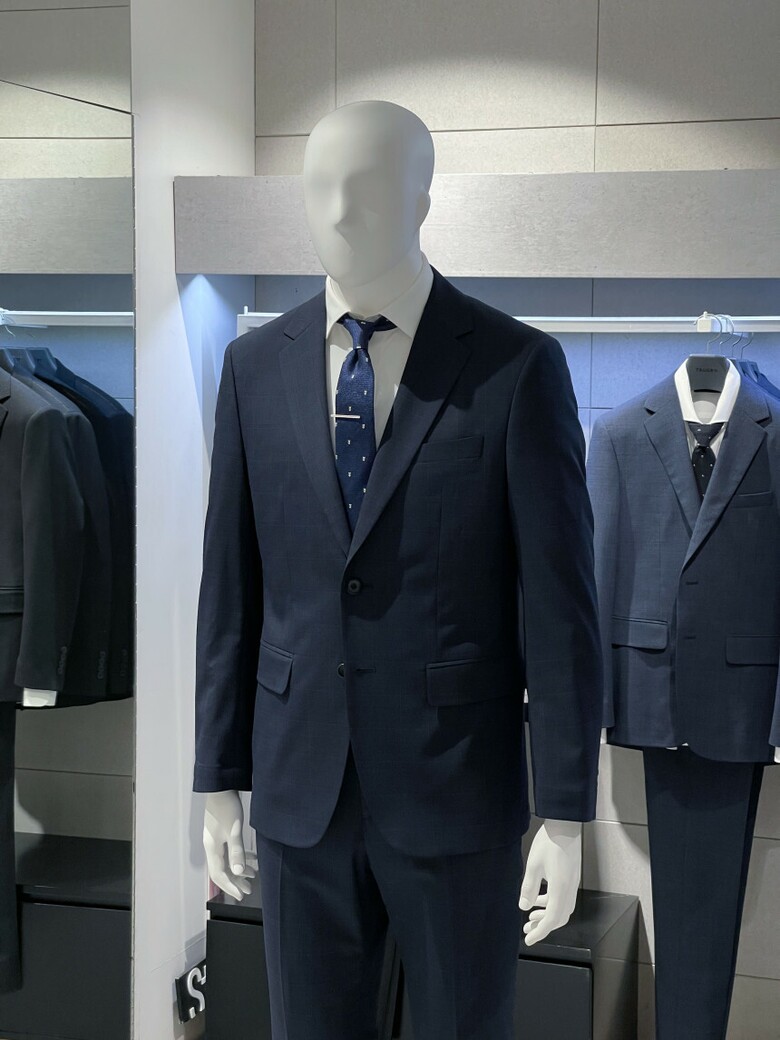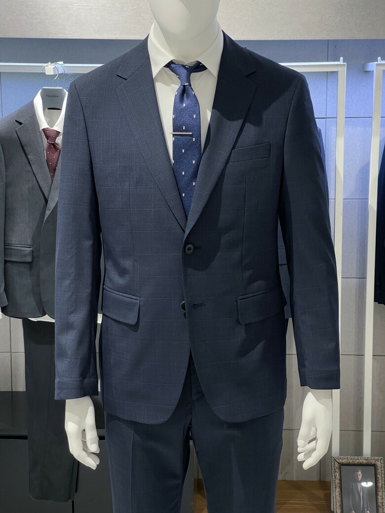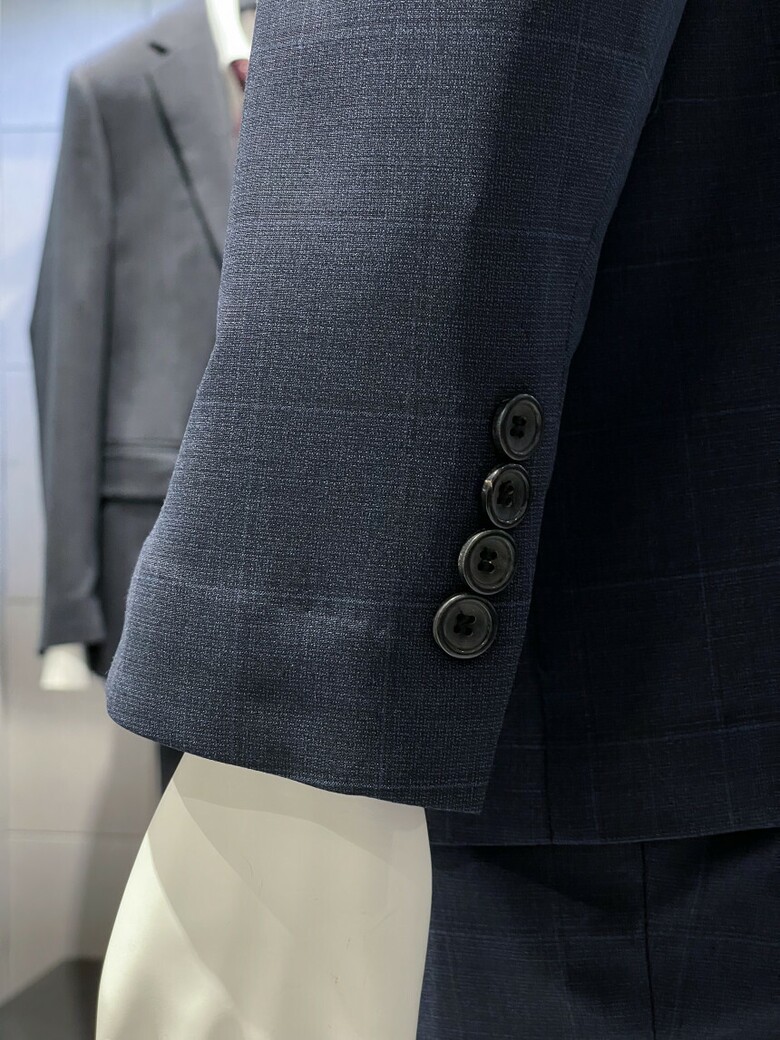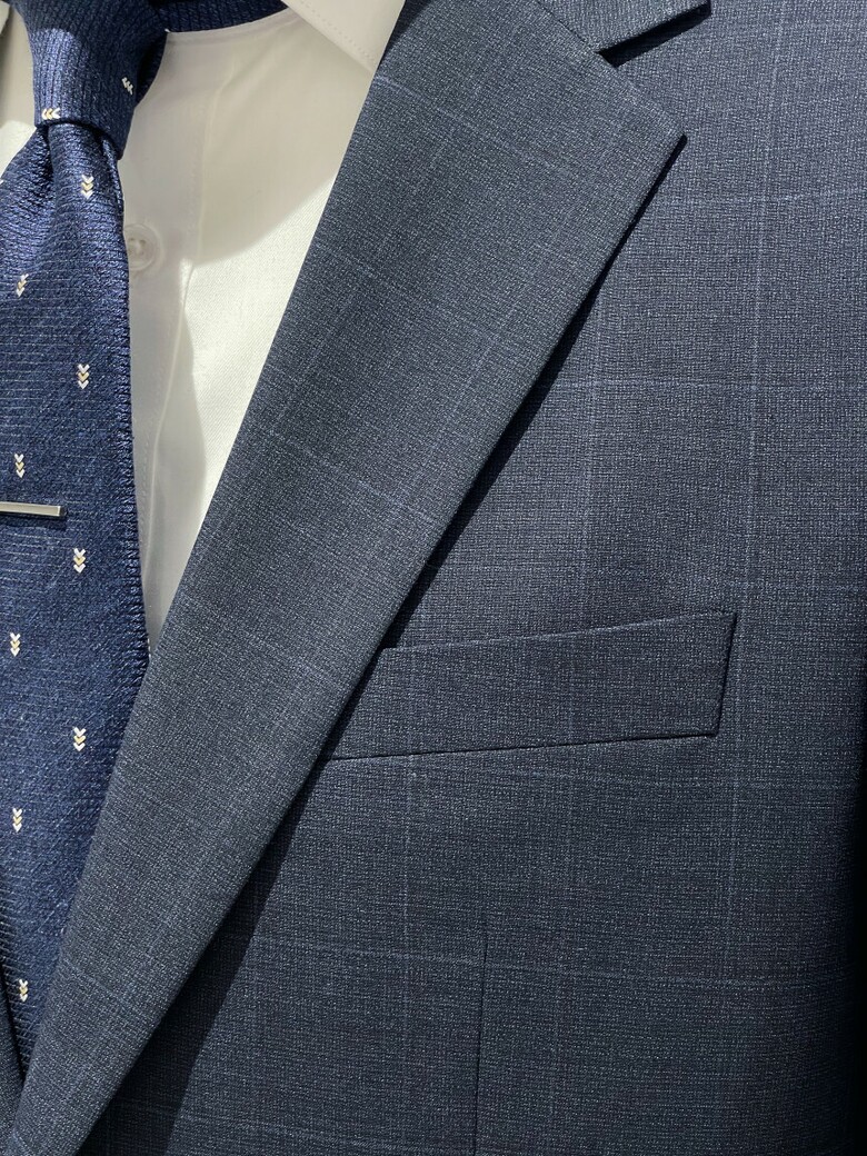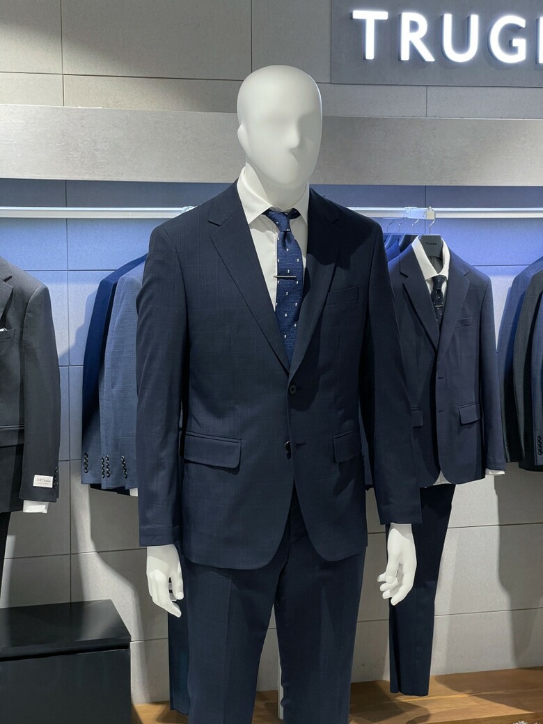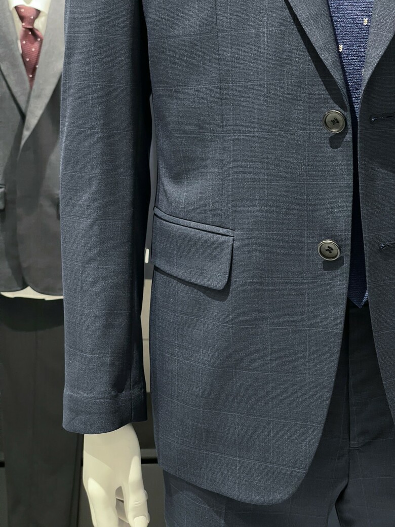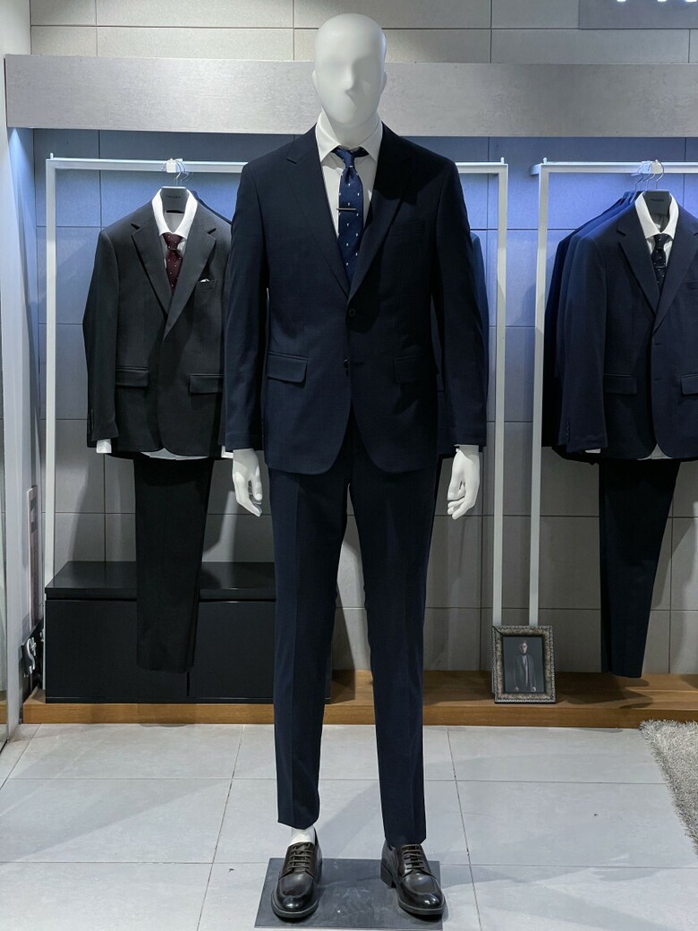 깔끔한 네이비 윈도우 체크가 돋보이는 수트입니다.