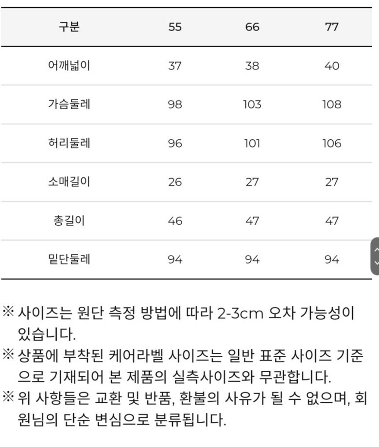 · 핏감 : □ 루즈 ■ 표준 □ 슬림