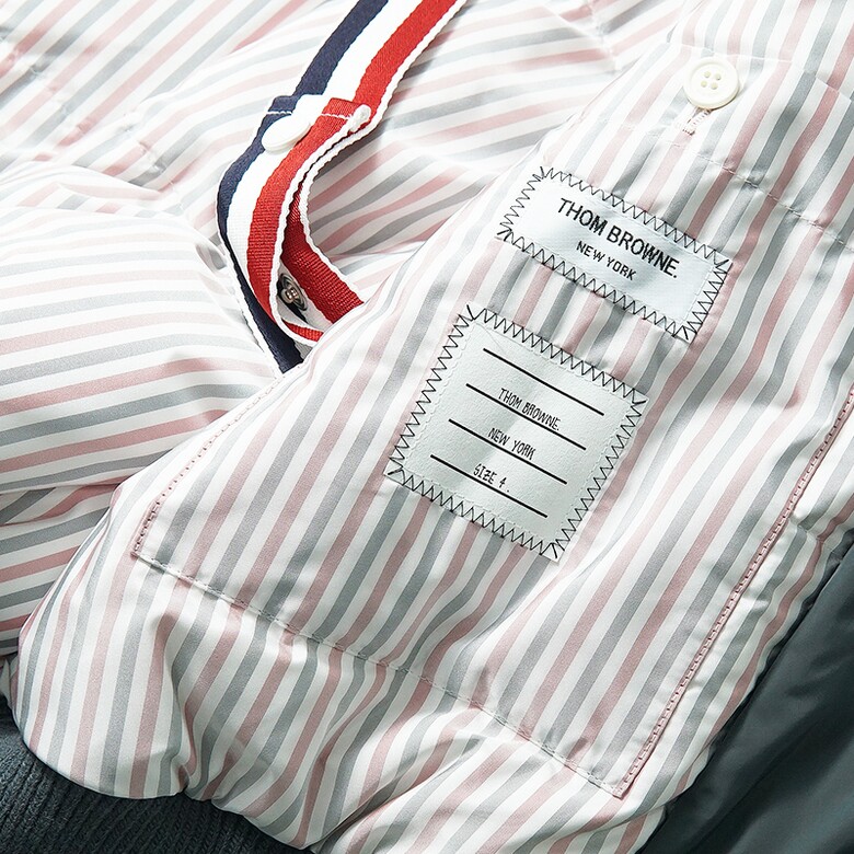 [럭스덕/국내당일] 톰브라운 4바 스트라이프 트윌 오버사이즈 패딩 블루종 MJD103X 07259 035