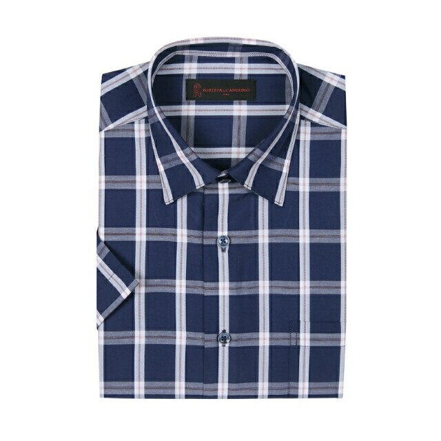 반소매 체크 면혼방 일반핏남방 RL2 2029