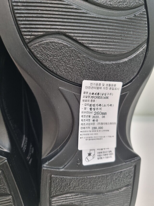 | 1. 제품 소재 (운동화인 경우에는 겉감, 안감을 구분하여 표시) | 소가죽 |