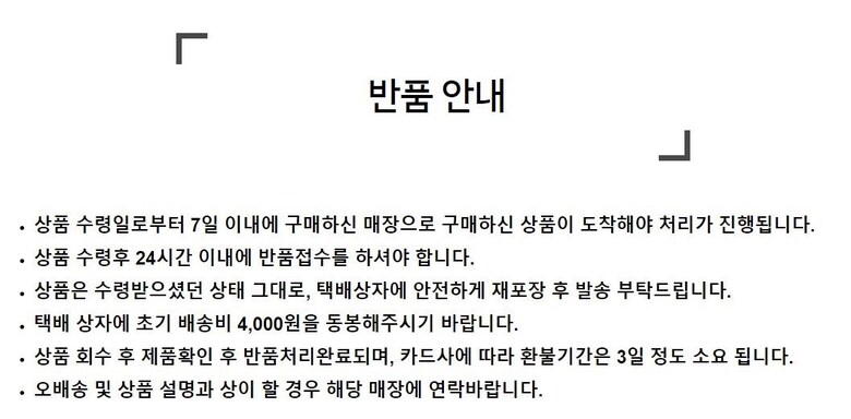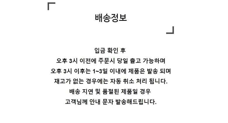 상품불량에 의한 반품, A/S, 품질보증 및 피해보상 등에 관한 사항은 소비자 분쟁해결기준(공정거래위원회 고시) 구매자가 미성년자인 경우에는 상품 구입시 법정대리인이 동의하지 아니하면 미성년자 본인 또는 법정대리인이 구매취소 할 수 있습니다. |