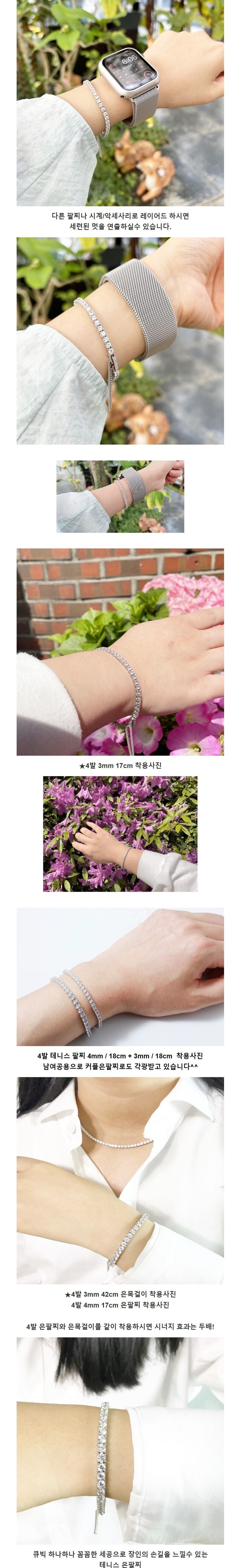 4발 테니스 사각 은팔찌 925실버 큐빅 헤라 남자 여자 베스트팔찌 꾸준한
