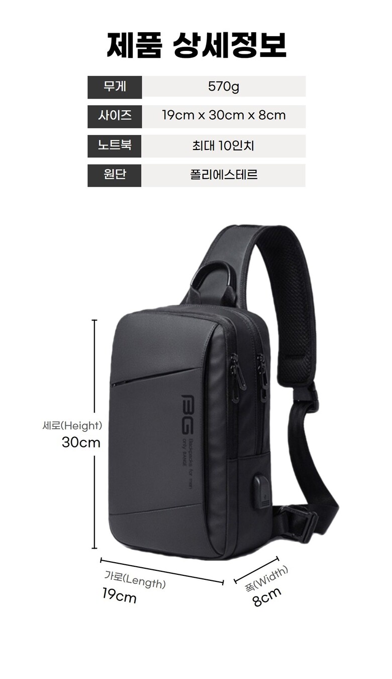 남성 방수 운동 여행 보조가방 슬링백 크로스백 가방