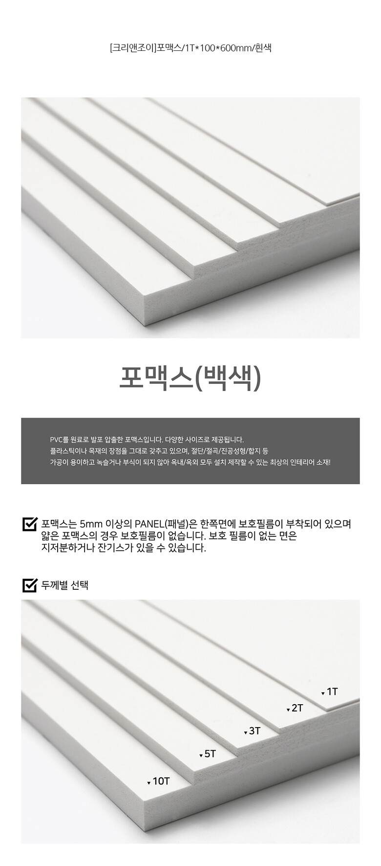 [크리앤조이]포맥스 FLF01100칼라 1Tx100x600mm 흰색