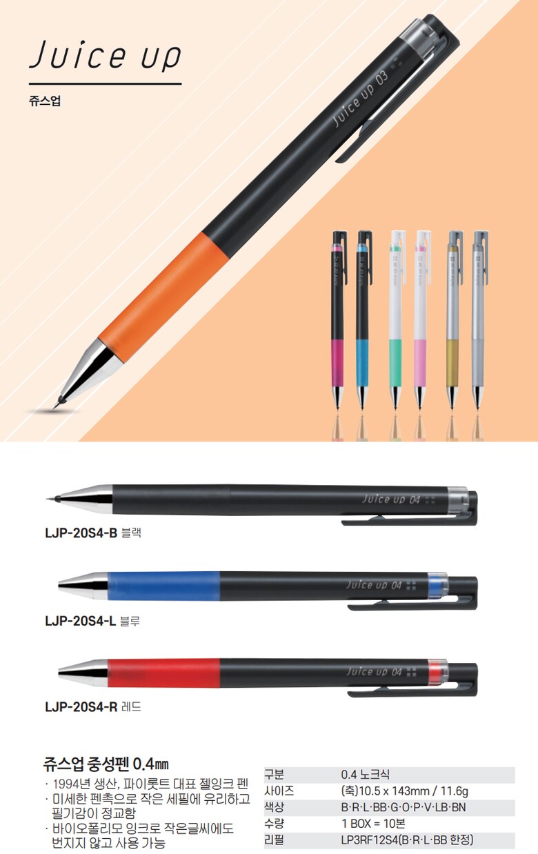 [파이롯트] 중성펜 쥬스업 0.4mm (색상선택)