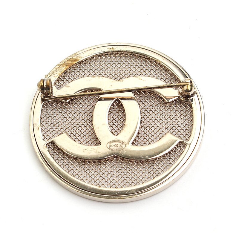 샤넬 CC 라운드 넷 브로치를 선보입니다.