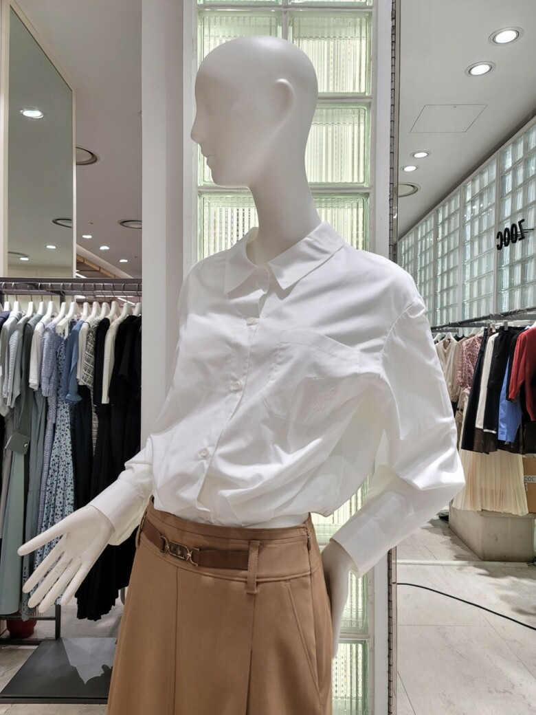 ZOOC 밑단 셔링 카라 블라우스 V233MSC915