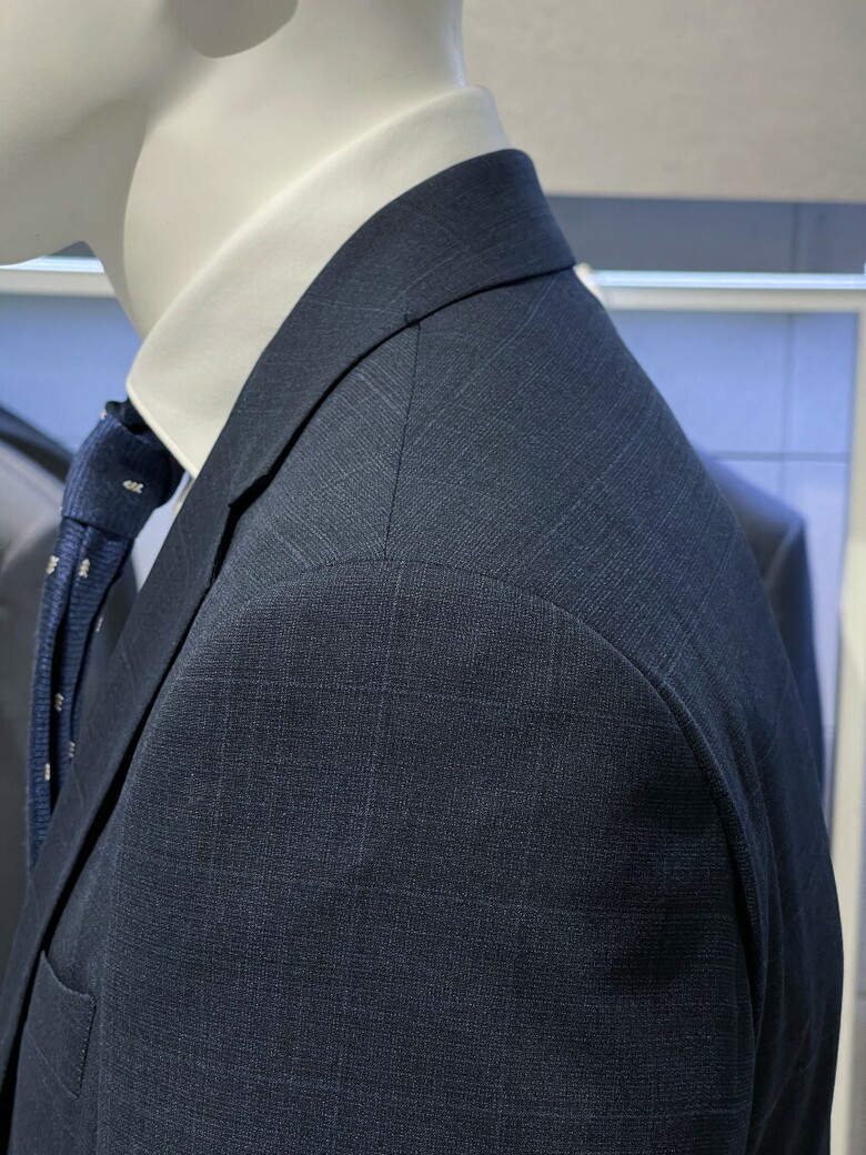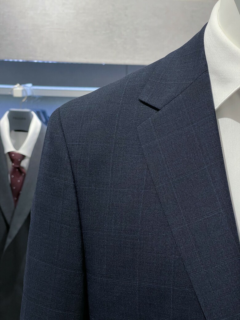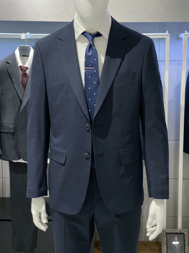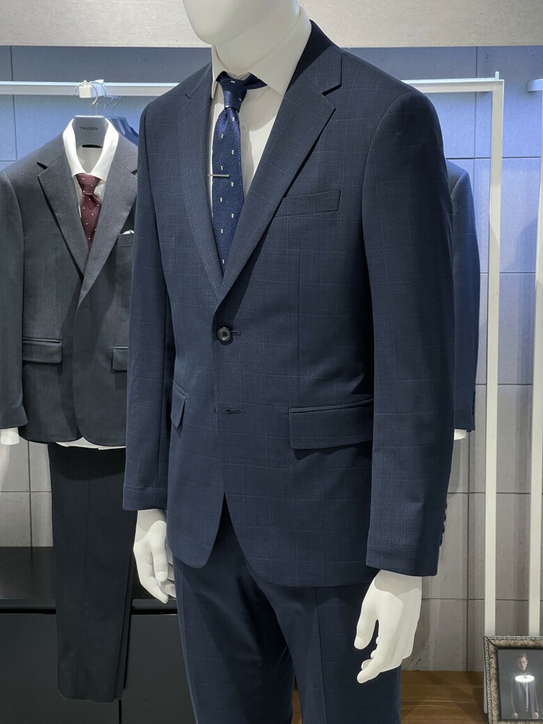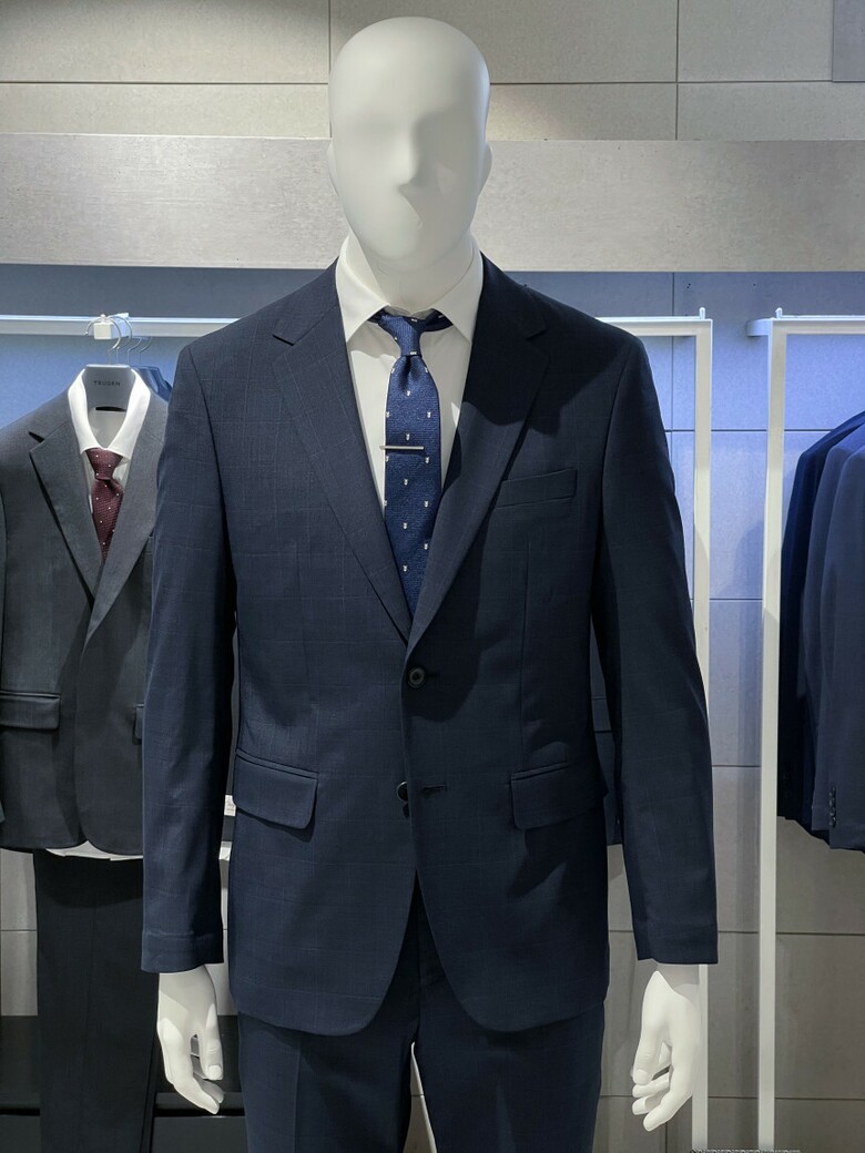 깔끔한 네이비 윈도우 체크가 돋보이는 수트입니다.