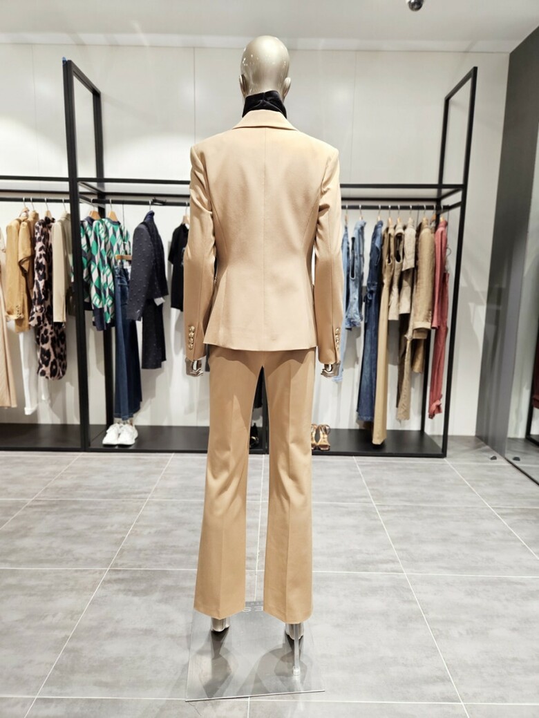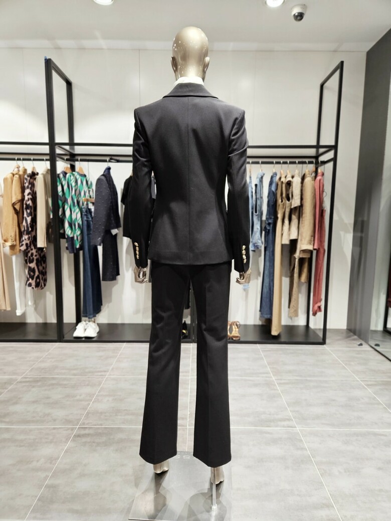 신축성이 있는 소재로 착용감이 편안하며 원버튼으로 포인트를 주었습니다