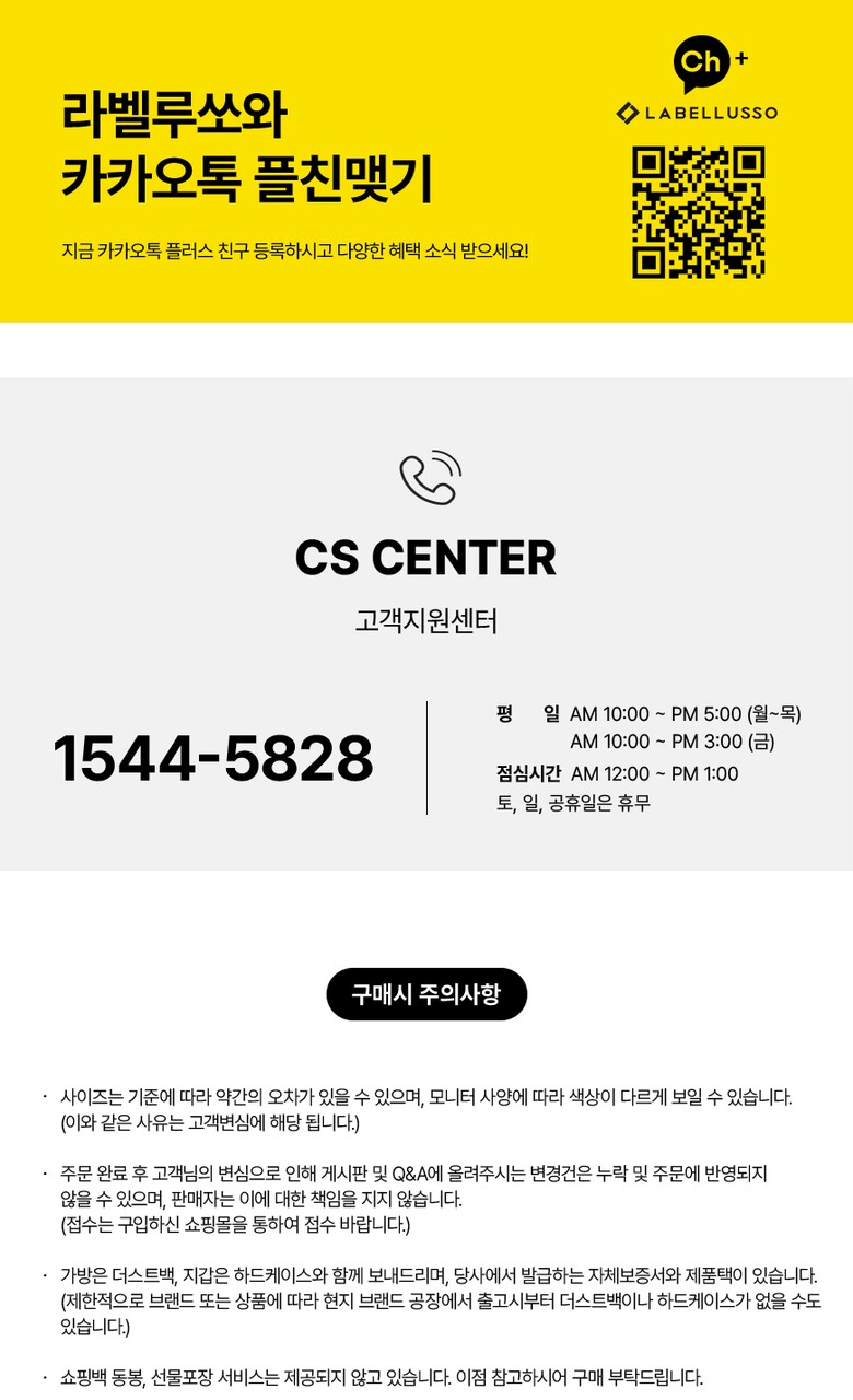 • 표시/광고와 상이, 제품 하자의 경우 수령 후 3개월 이내, 또는 그 사실을 안 날로부터 30일 이내 교환/반품 가능합니다.