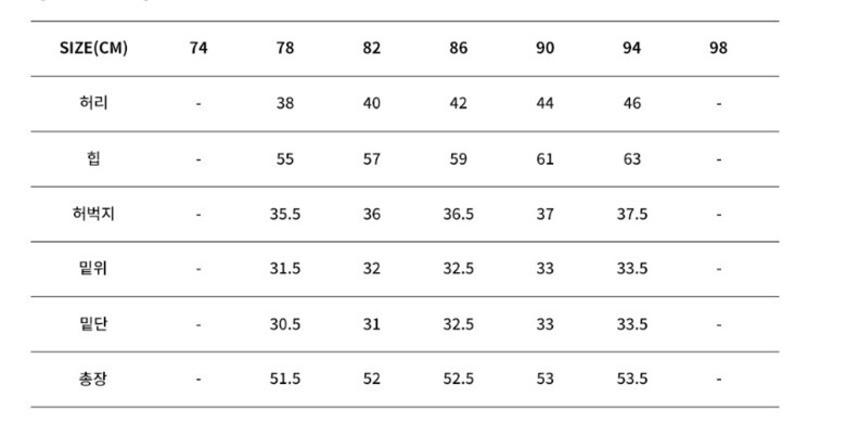 사이즈 : 78,82,86,90,94
