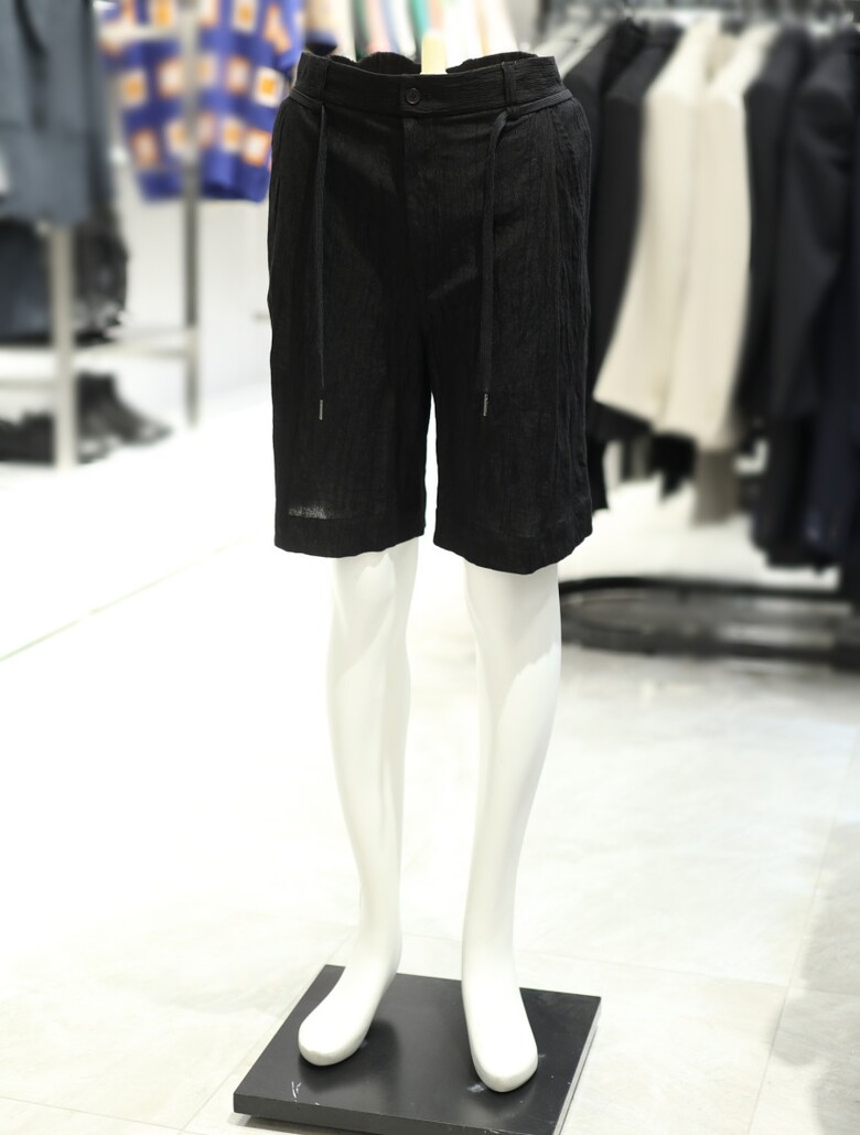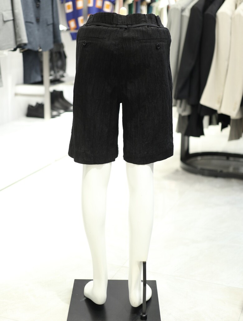 [가넷옴므] 블랙 루즈핏 플리츠 숏 팬츠 GBS40228