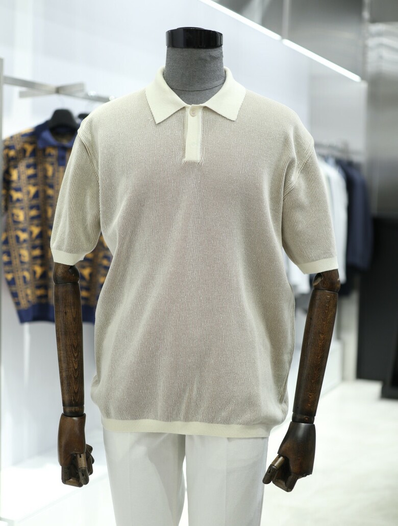 [가넷옴므] 아이보리 반팔 카라 니트 GBS37211