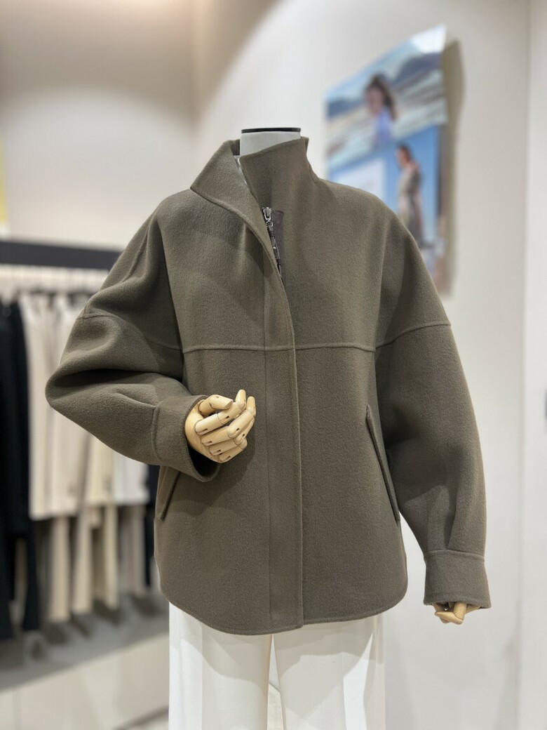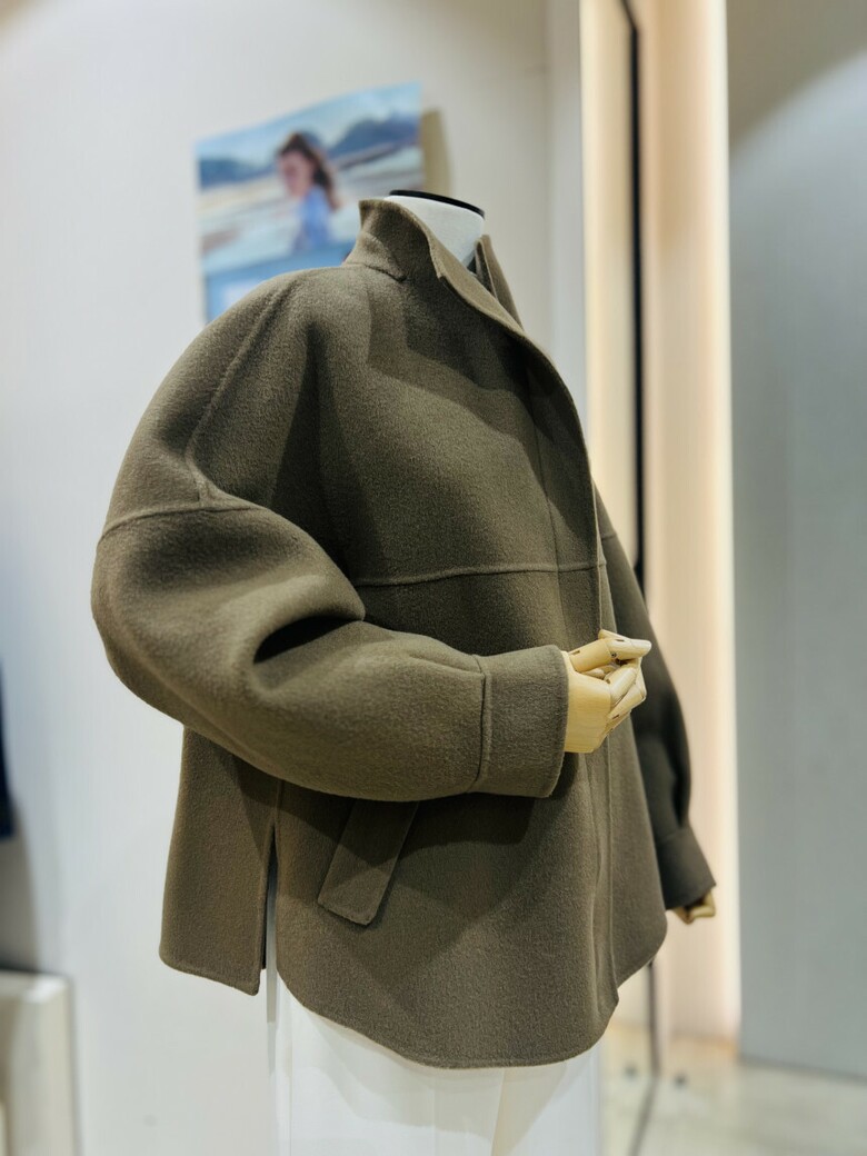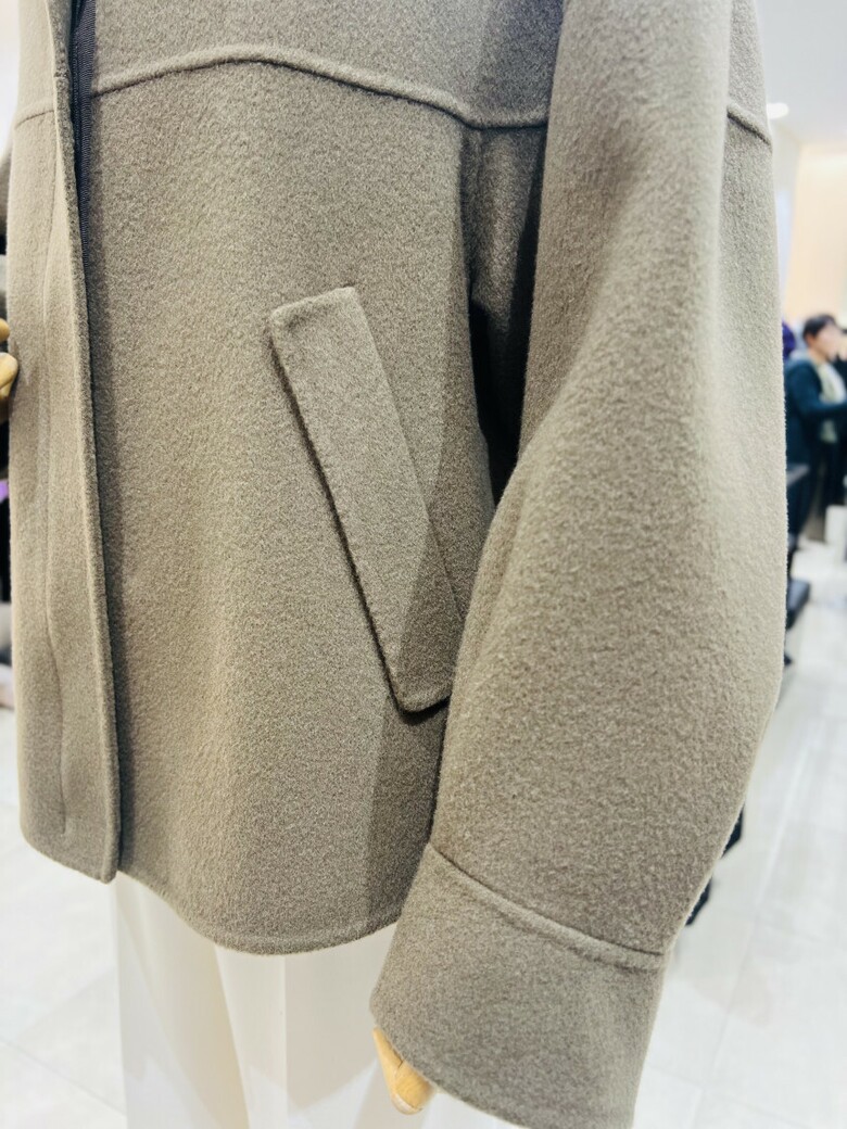 울 캐시미어 소재가 포근한 숏기장 코트입니다.