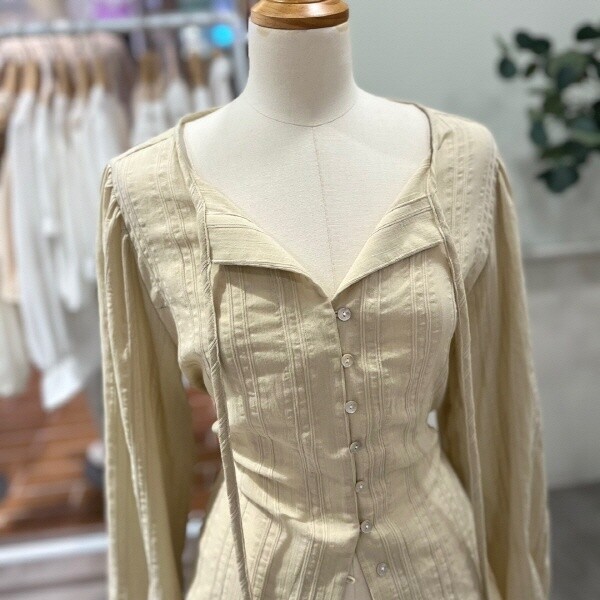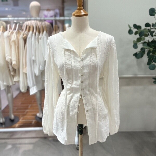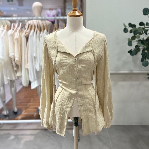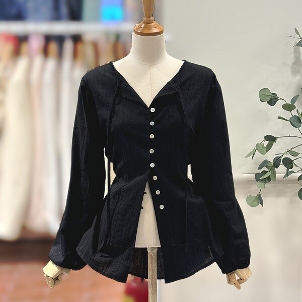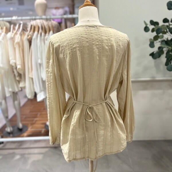 FTABL1167_허리끈 단추 블라우스