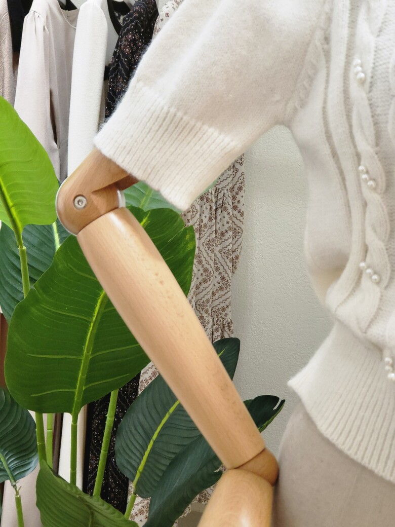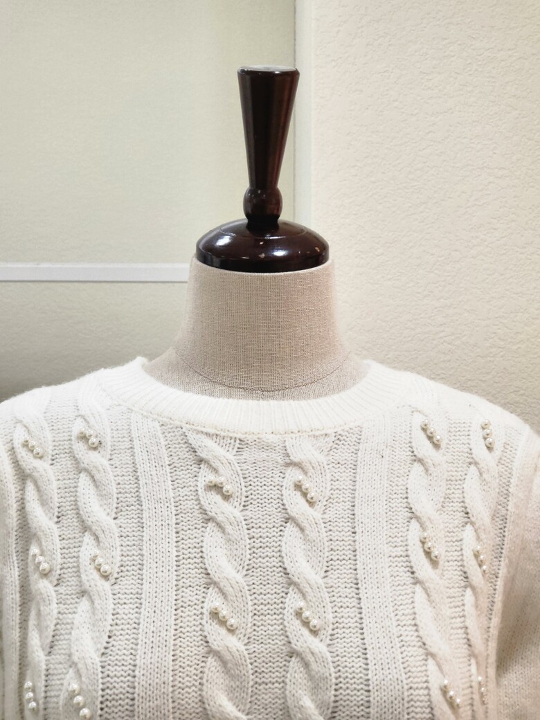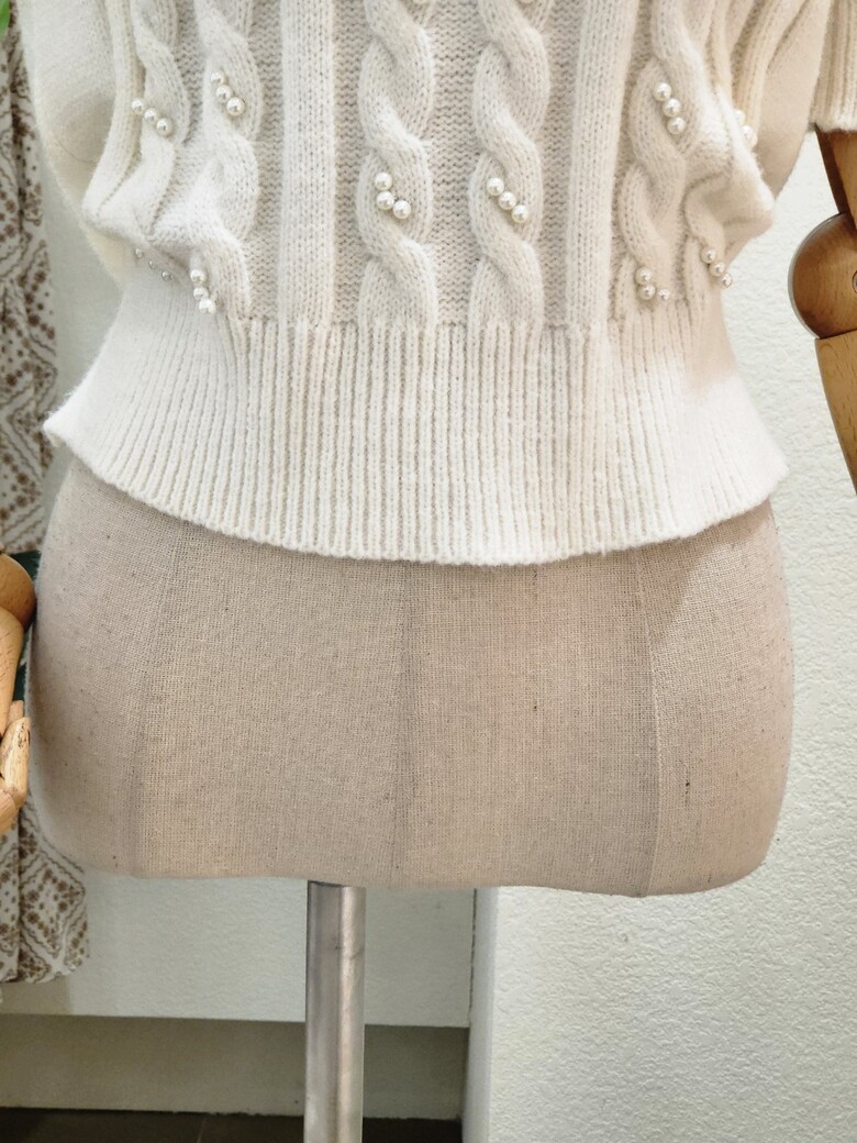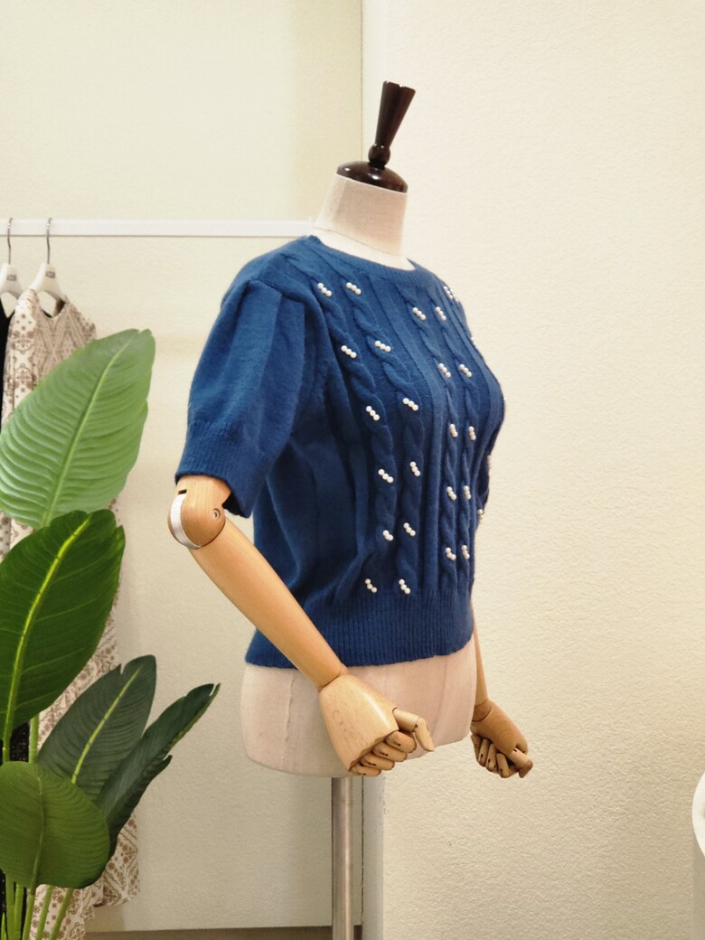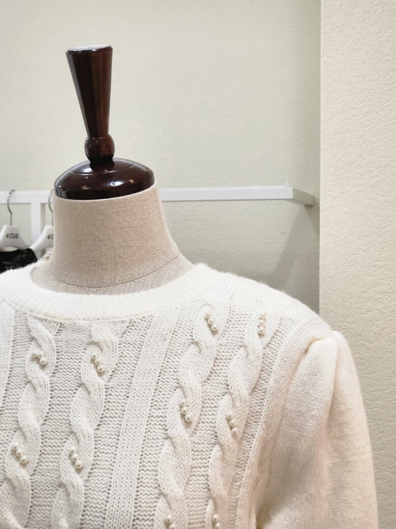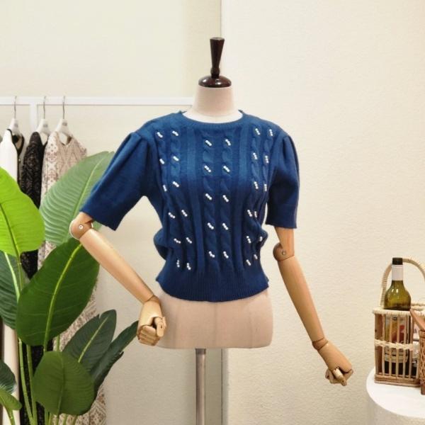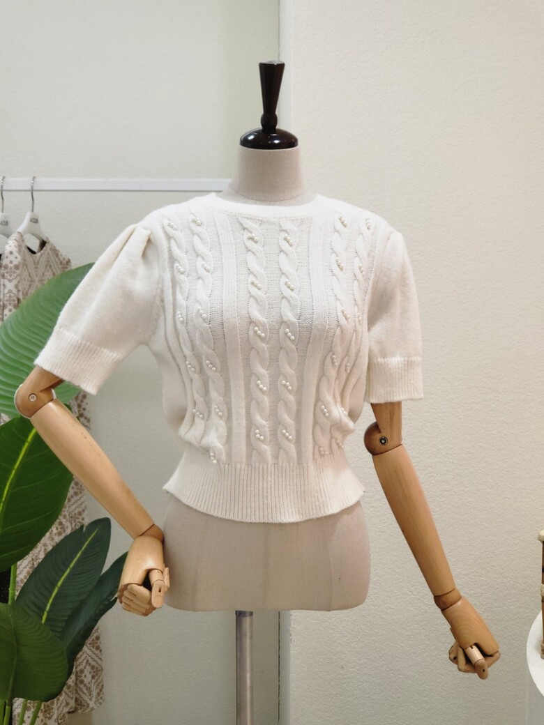 FS3A7KT00196_진주 포인트 꽈배기 반팔 니트