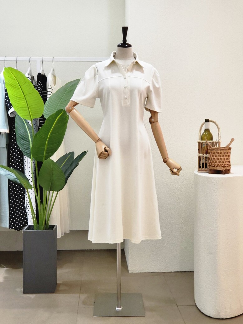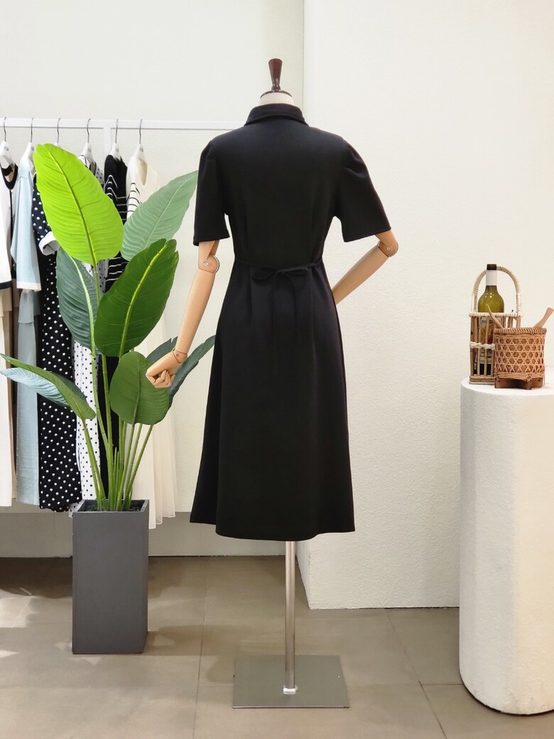 FM3D9OP5417_뒷리본 카라넥 A라인 롱원피스