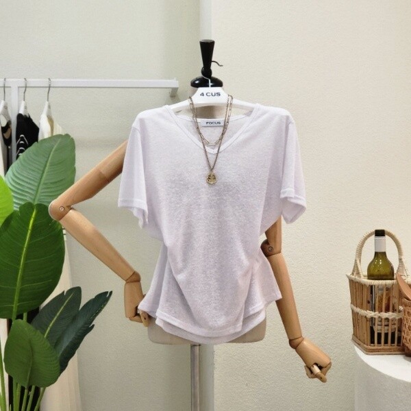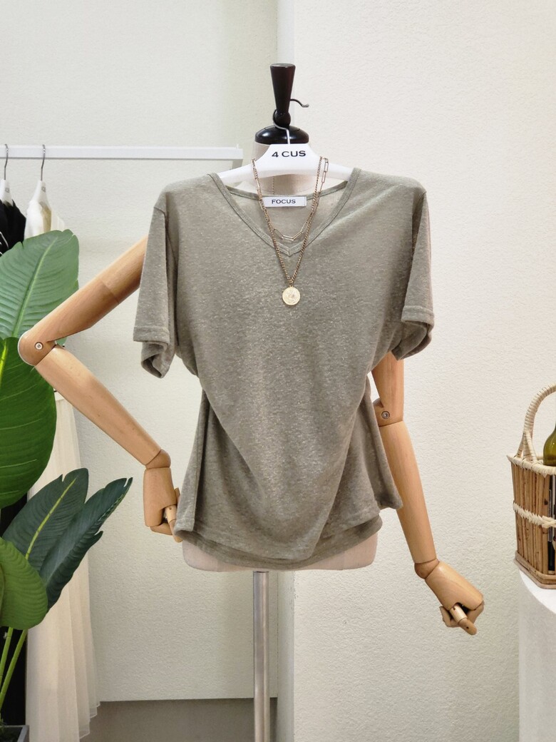 FM3E7TS05399_린넨 혼방 브이넥 티셔츠