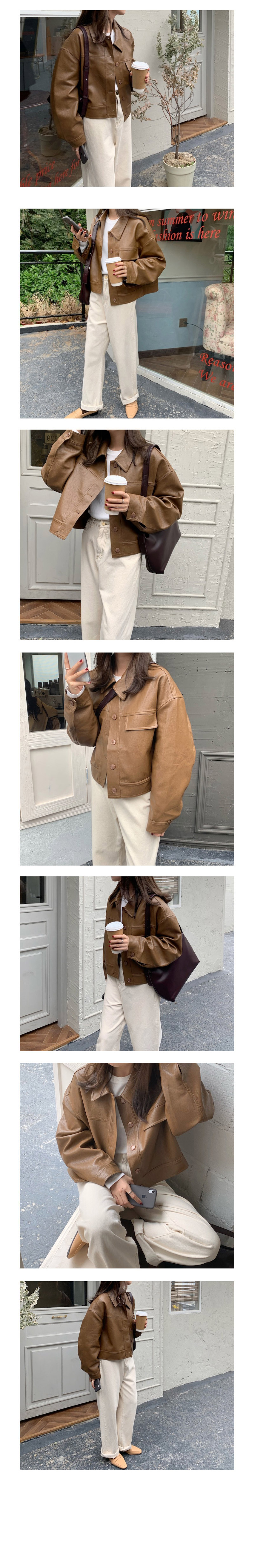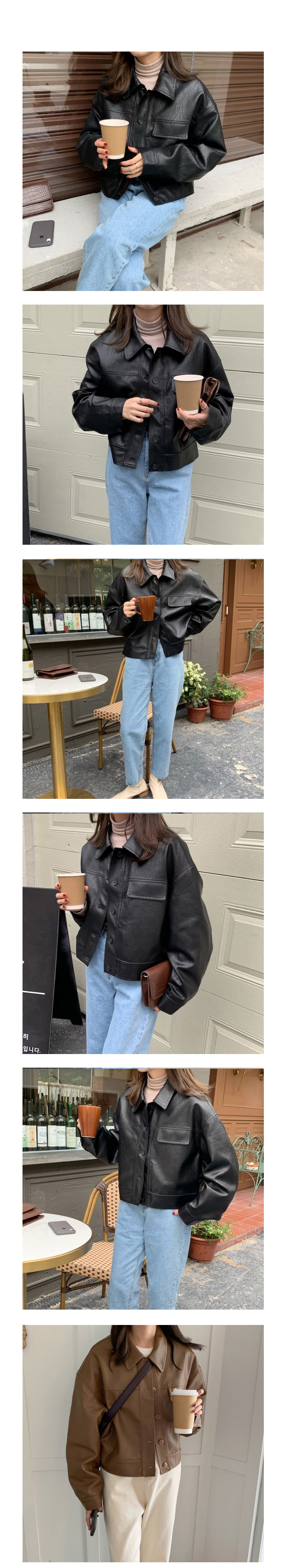 긴터 원 포켓 오버핏 크롭 레더자켓