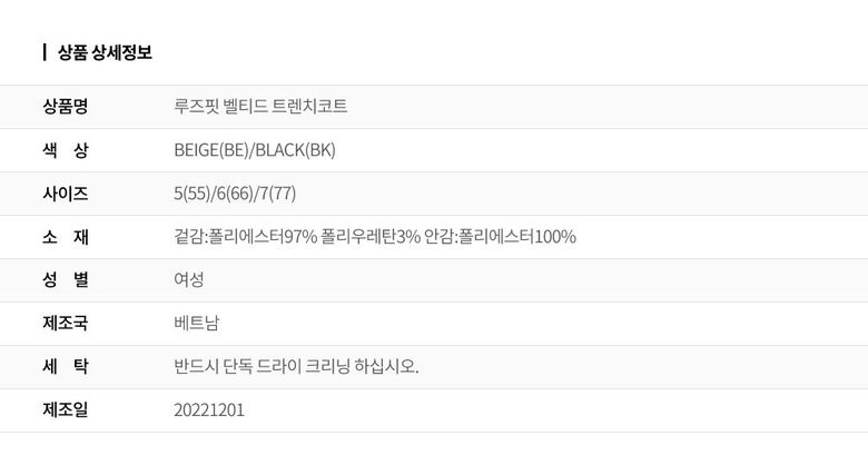 | 6. 세탁방법 및 취급시 주의사항 | 상세페이지 참조 |