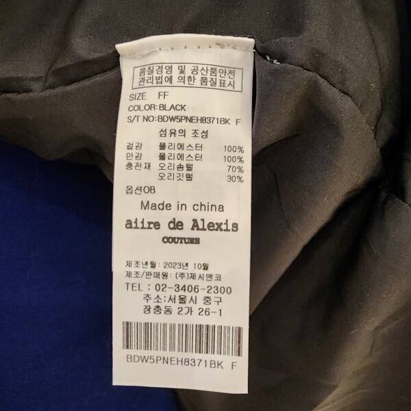 제품소재 : 겉감안감-폴리에스터100% 충전재-오리솜털70%오리깃털30%