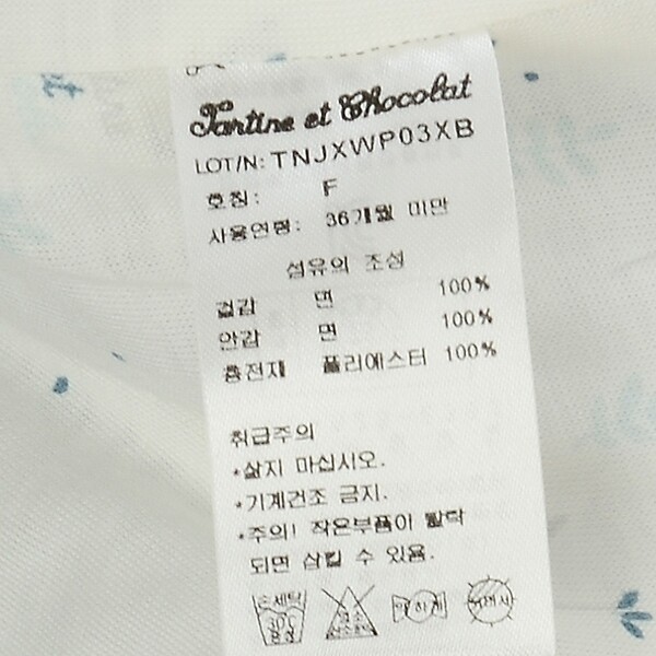 | 6. 취급시 주의사항 | 삶지 마십시오, 기계건조 금지, 주의! 작은 부품이 탈락되면 삼킬 수 있음. |