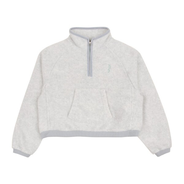 아웃도어 감성으로 제안한 라이트 그레이 컬러의 폴라폴리스 하프 집업 티셔츠입니다.