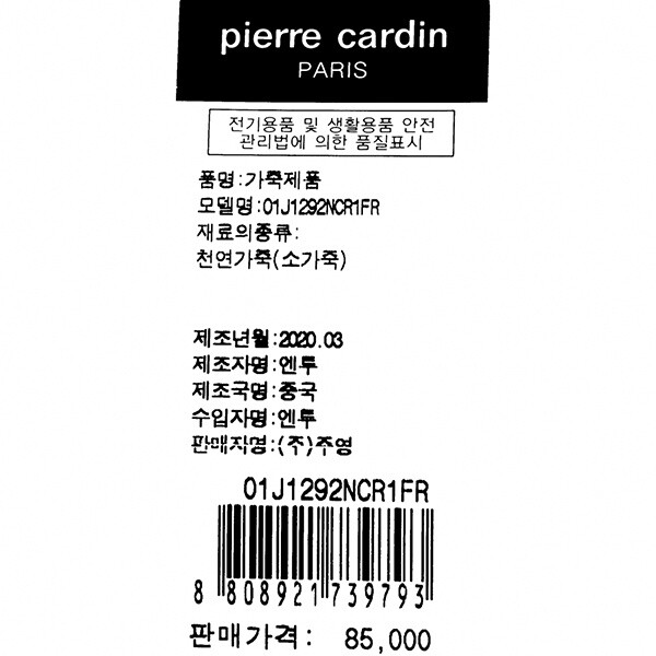 대구백화점SG 피에르가르뎅핸드백 01J1292NCR 여성반지갑