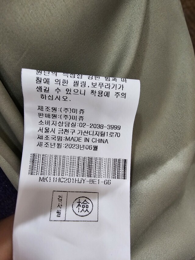 ·겉감 :울70%나일론27%아크릴2%폴리에스테르1%