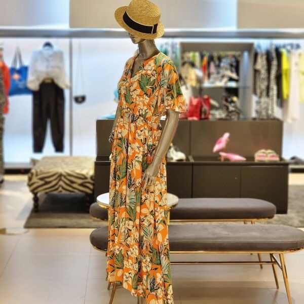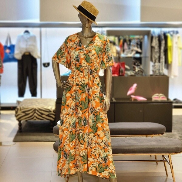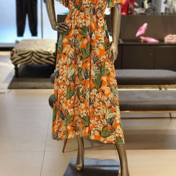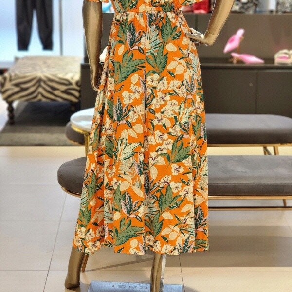 BC65NLOR3390_오렌지 브이넥롱원피스