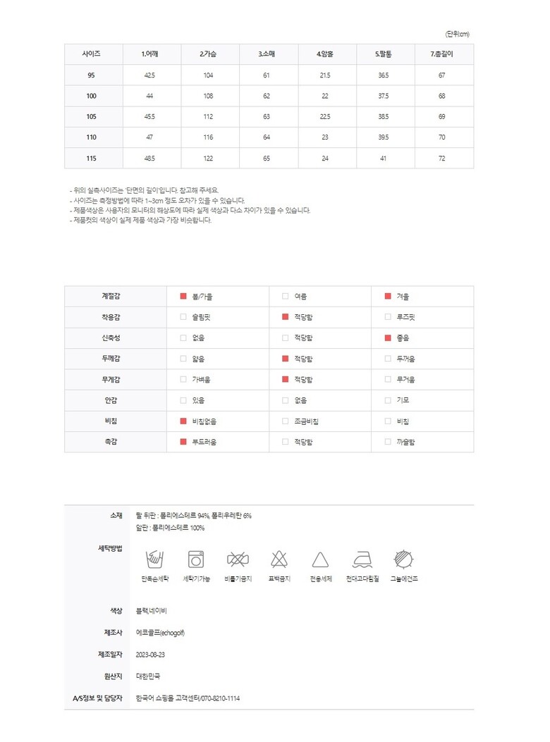 6. 세탁방법 및 취급시 주의사항 상세이미지 참조